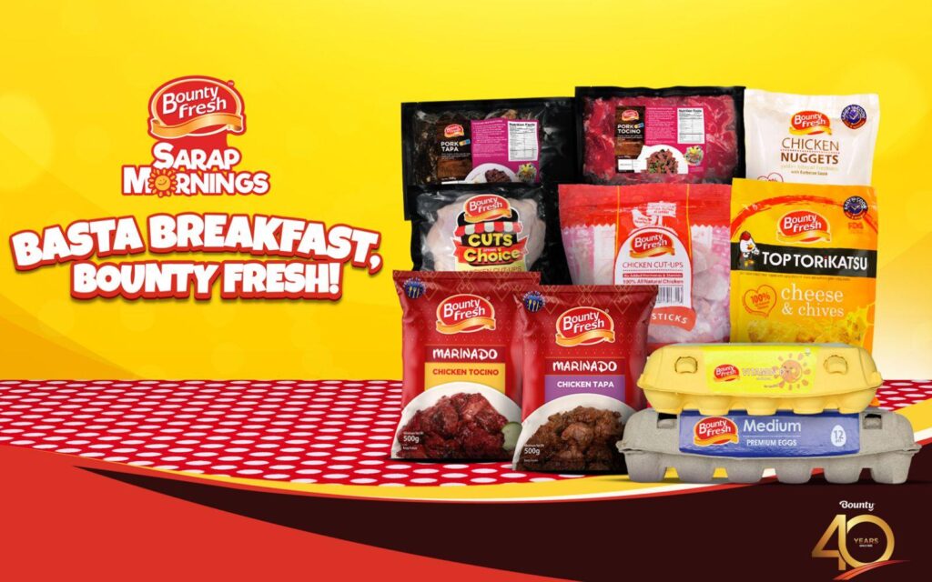 For four decades, Bounty Fresh has been present in everyday moments—from breakfast tables and baon boxes to holiday feasts and family gatherings—making it easier for families to prepare fresh, nutritious, delicious yet value-for-money meals. Its wide range of products includes Golden Yolk eggs, Chicken Raised with No Antibiotic Ever which is certified as “Reared without Antibiotics” by Lloyd’s Register Quality Assurance (LRQA), as well as marinated chicken products such as Marinado Chicken Tocino and Marinado Chicken Tapa. The brand also offers fresh, clean and tender meats (beef and pork) and convenient value-added favorites such as nuggets, chicken sticks, and chicken popcorn to name a few.